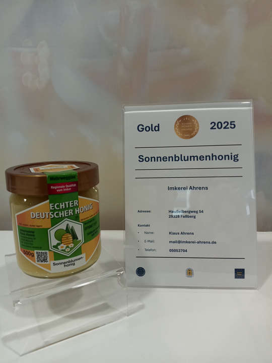 Auf dem kürzlich stattgefundenem Eurobee Honey Award wurde unser Honig mit Gold ausgezeichnet